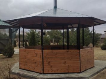 Беседка со столом-мангалом предоставляет идеальное место для семейных обедов, романтических ужинов или дружеских встреч на свежем воздухе.